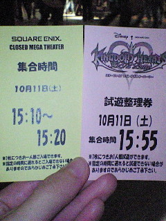 右隣はKH新作の一つ「358/2Days(スリー ファイブ エイト デイズ オーバー ツー)」の試遊整理券です。