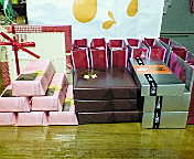 ピンクの箱と茶色の箱は中村屋でー。銀色のがフランセでー。